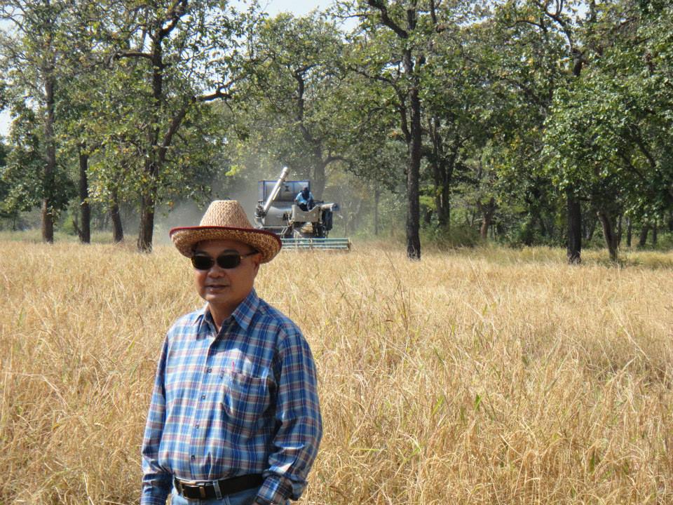 รถเกี่ยวข้าวที่นาโนนแดงโฮมสเตย์แปลงที่ ๒ หว่านข้าวหอมมะลิวันที่ ๑๘ มิ.ย. ๕๖ และเกี่ยวข้าววันที่ ๑ ธ.ค.๕๖